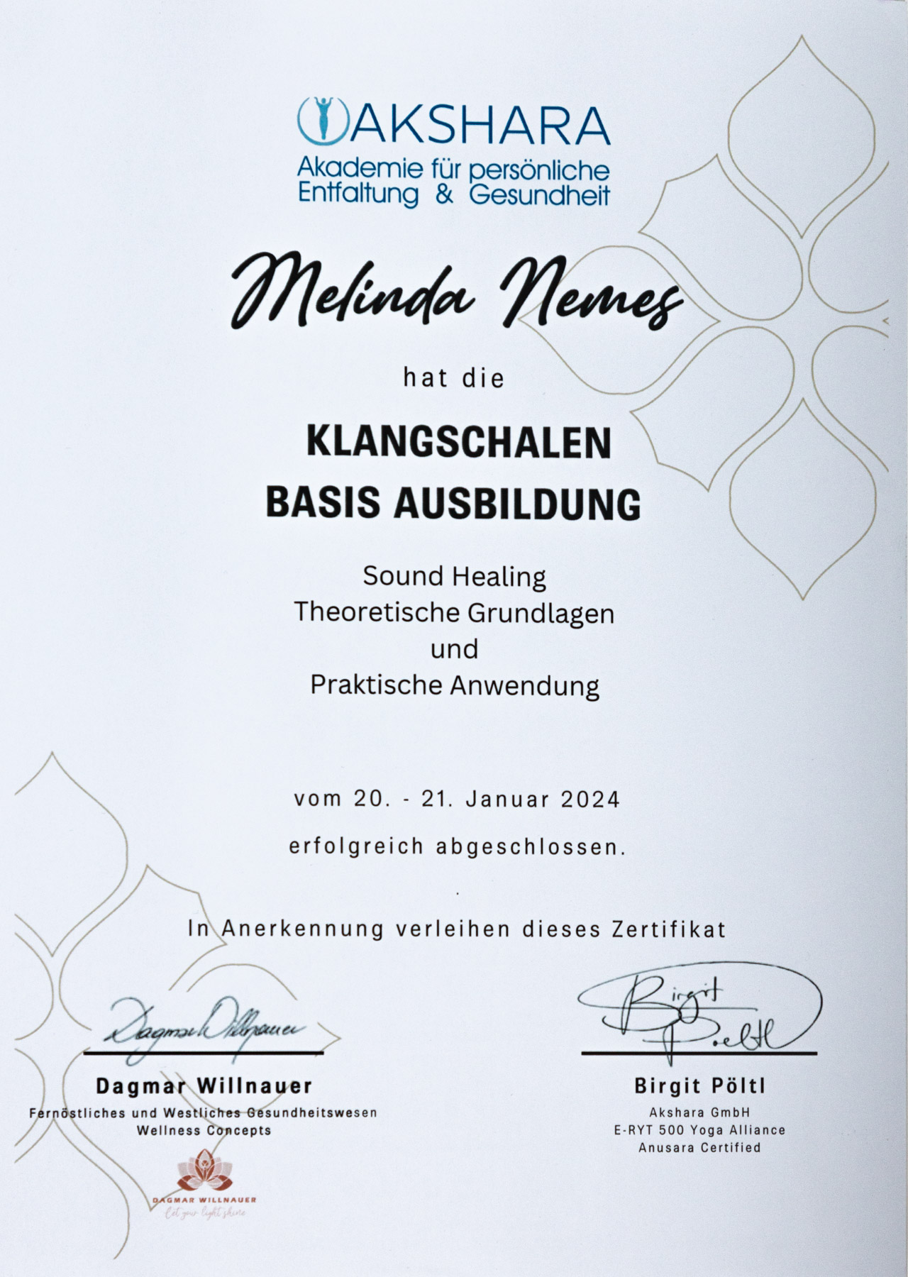 Nachstehend meine bisher erworbene Zertifikate.