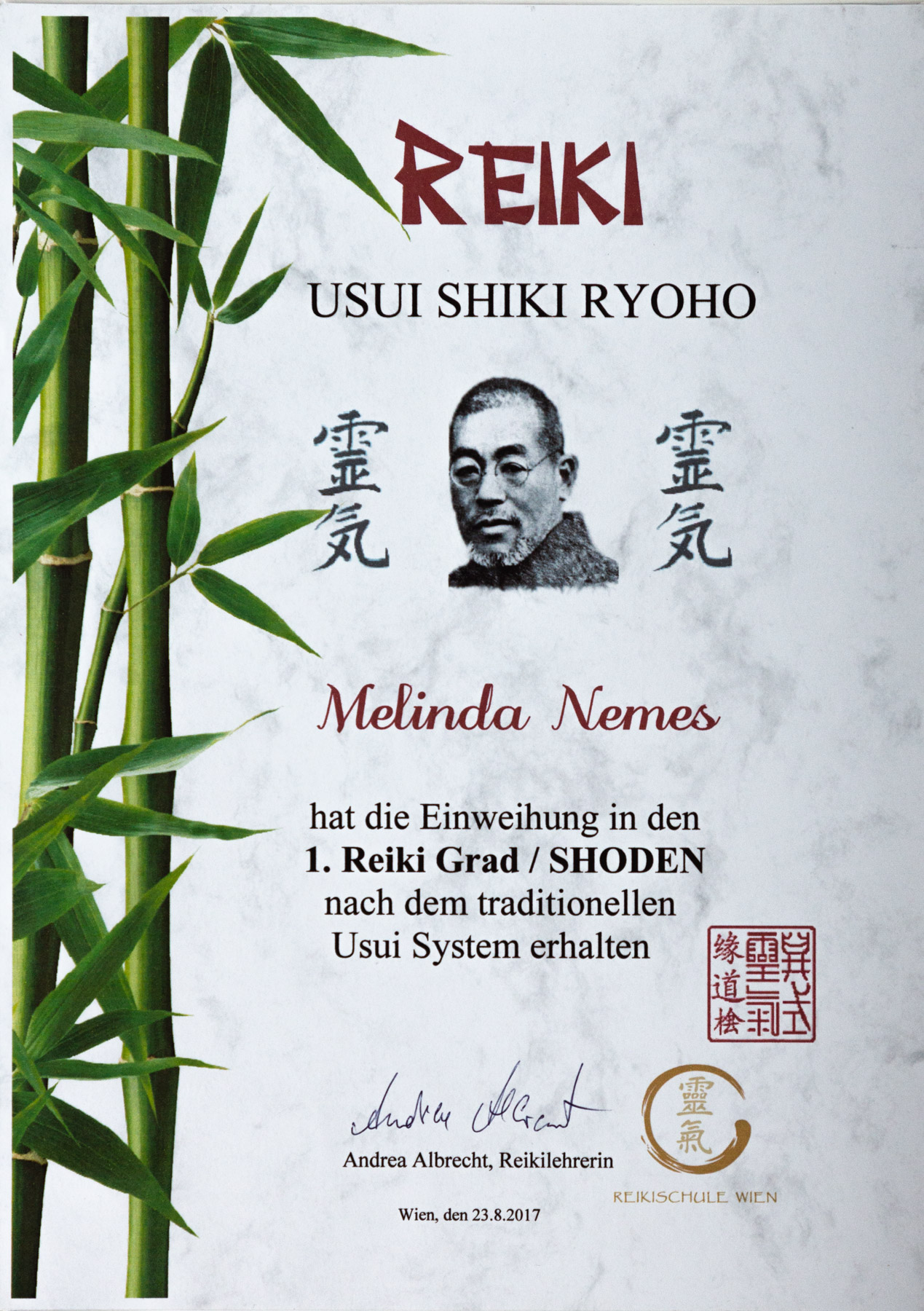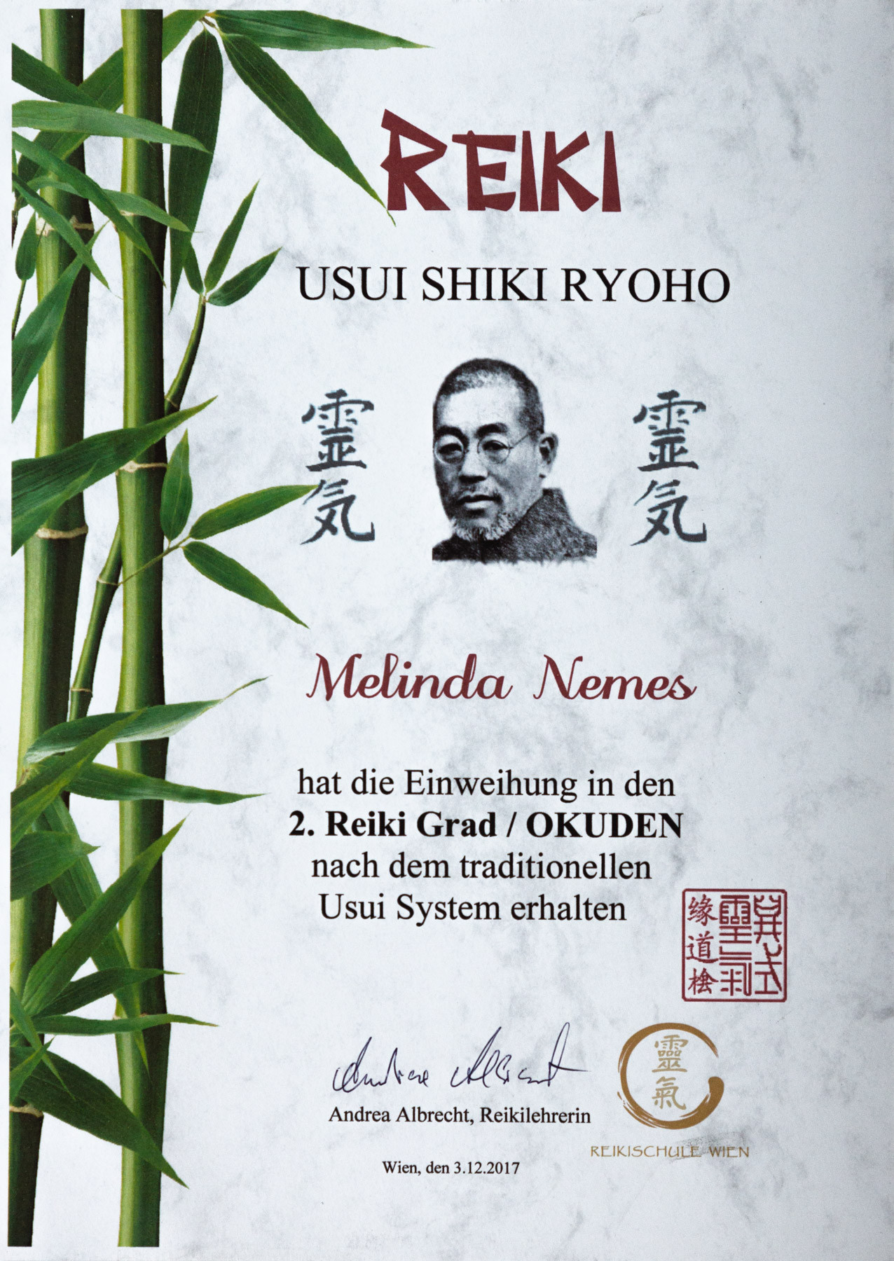 In 2017 hatte ich die erste Einweihung bei Andrea Albrecht. Seitdem bekam ich den Reiki Okuden 2. Grad.